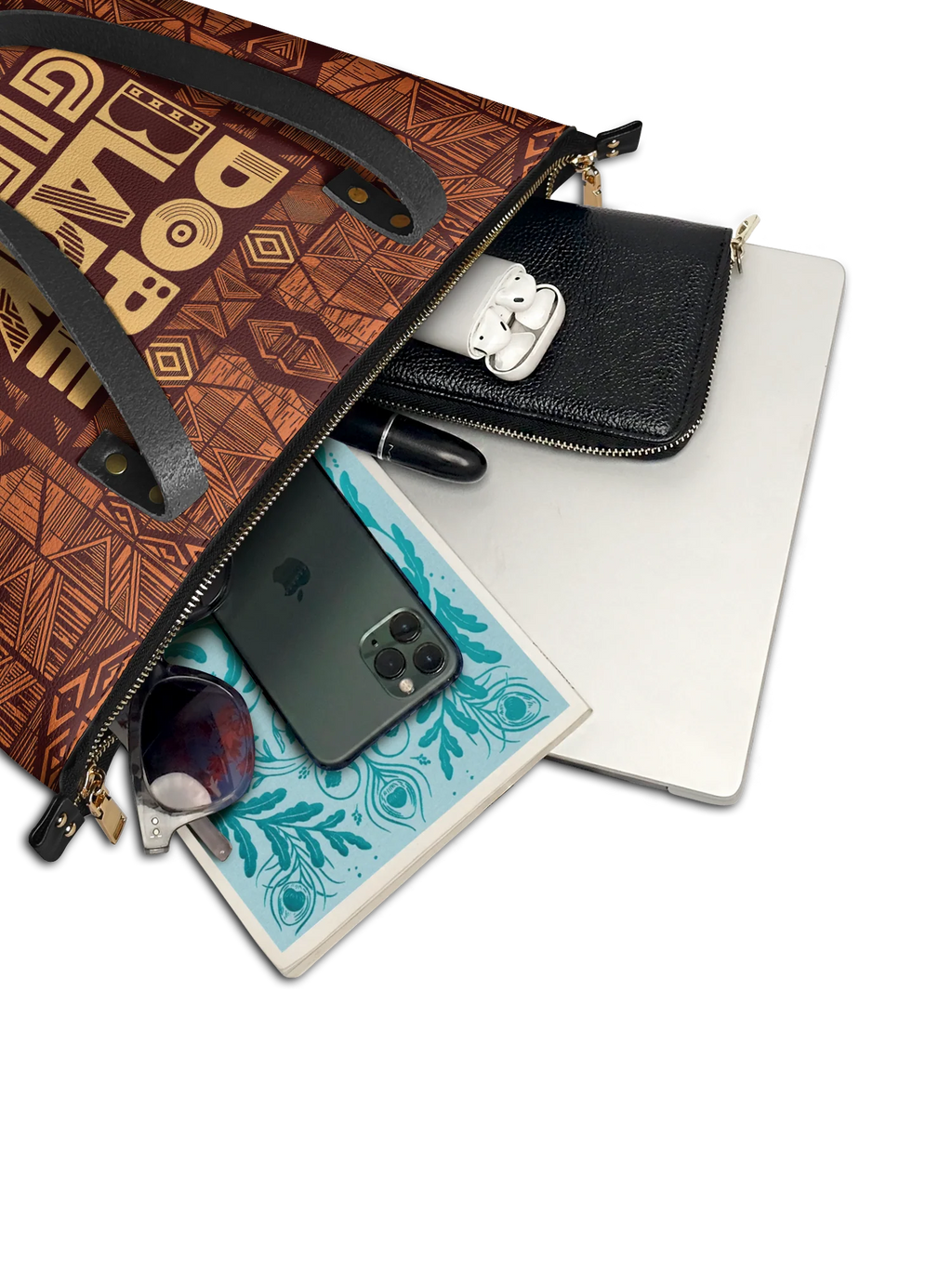 This tote bag is spacious and practical, easily fitting a 13" laptop, books, and daily must-haves.