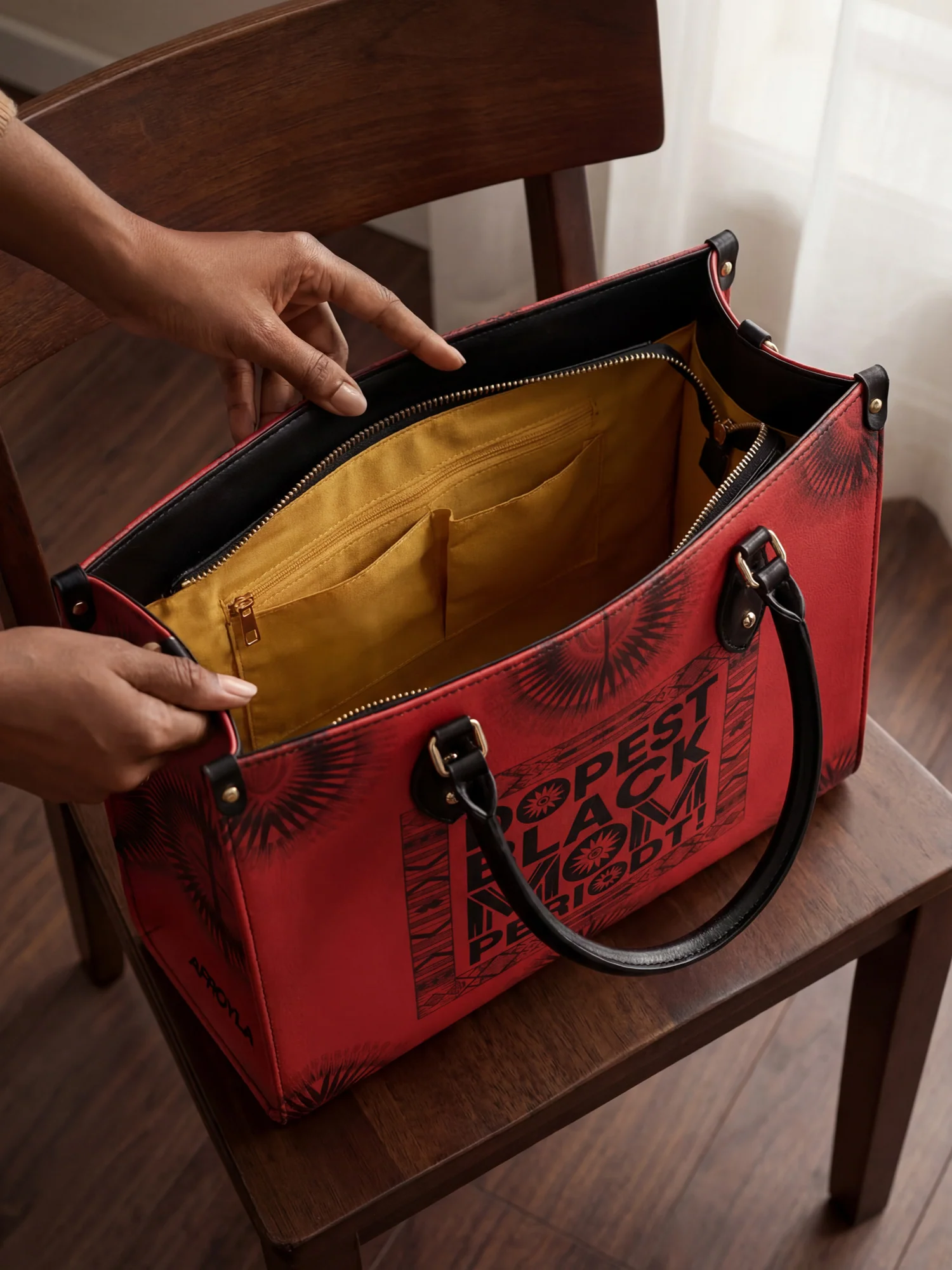The Tajimom Handbag, combining Taji (meaning crown in Swahili) and Mom, is a royal tribute to Black mothers who wear their strength, love, and resilience like a crown. This handbag is for the unapologetically dope moms who do it all with grace and power.