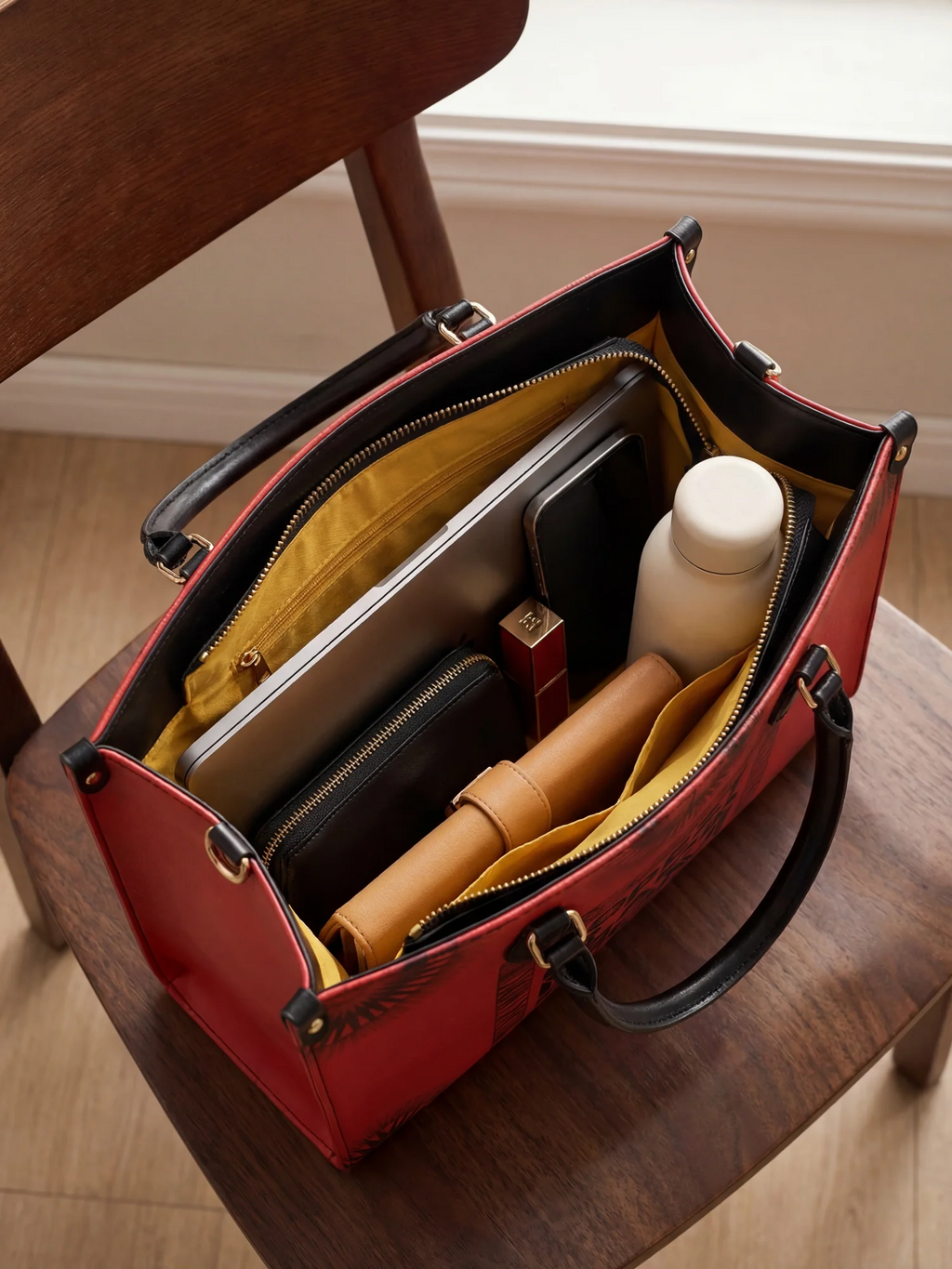 Premium vegan leather with reinforced stitching and a soft-touch lining.