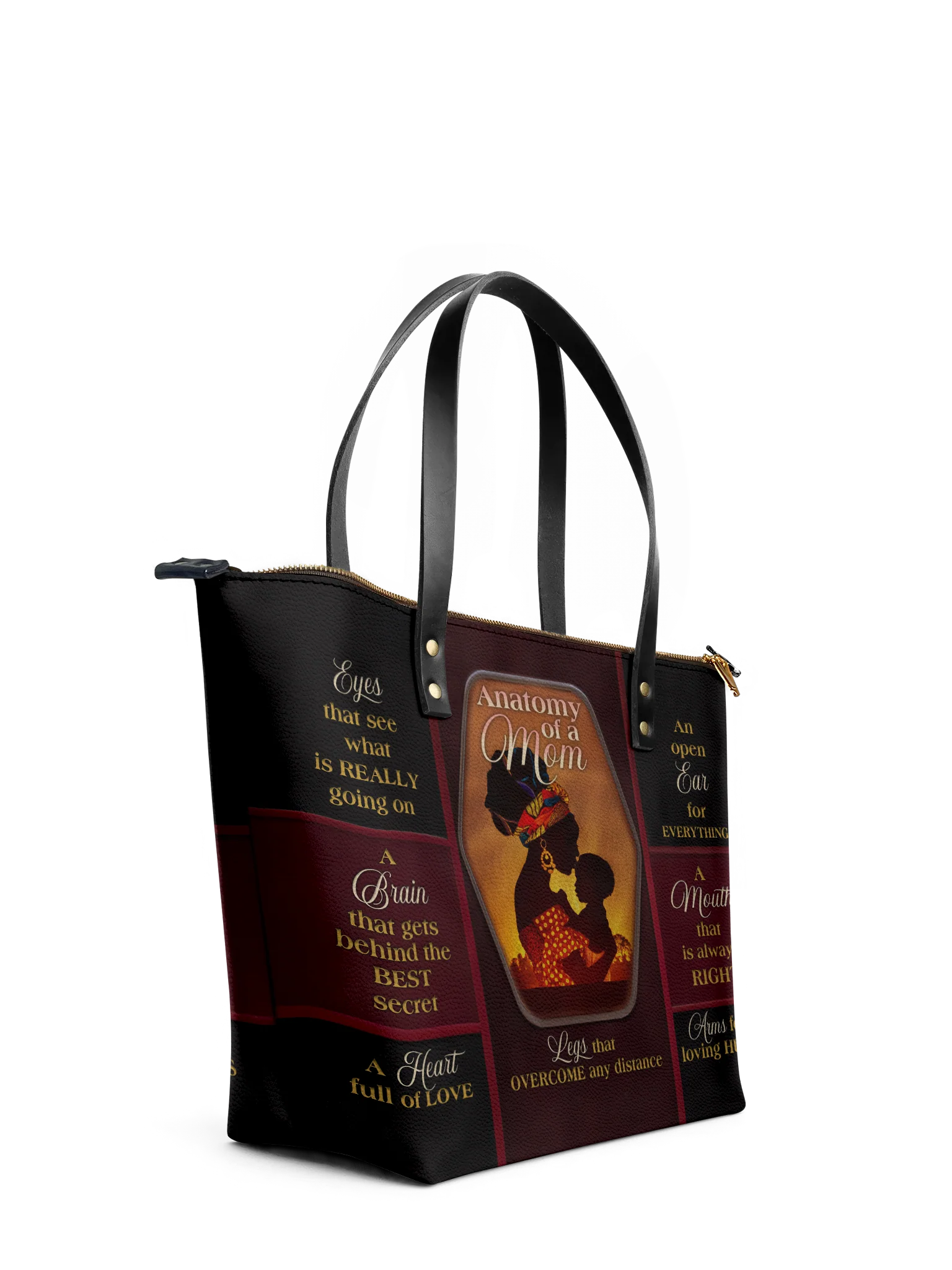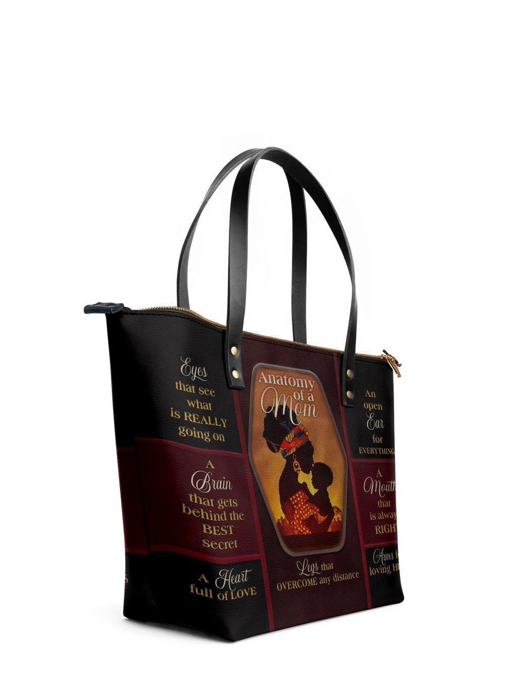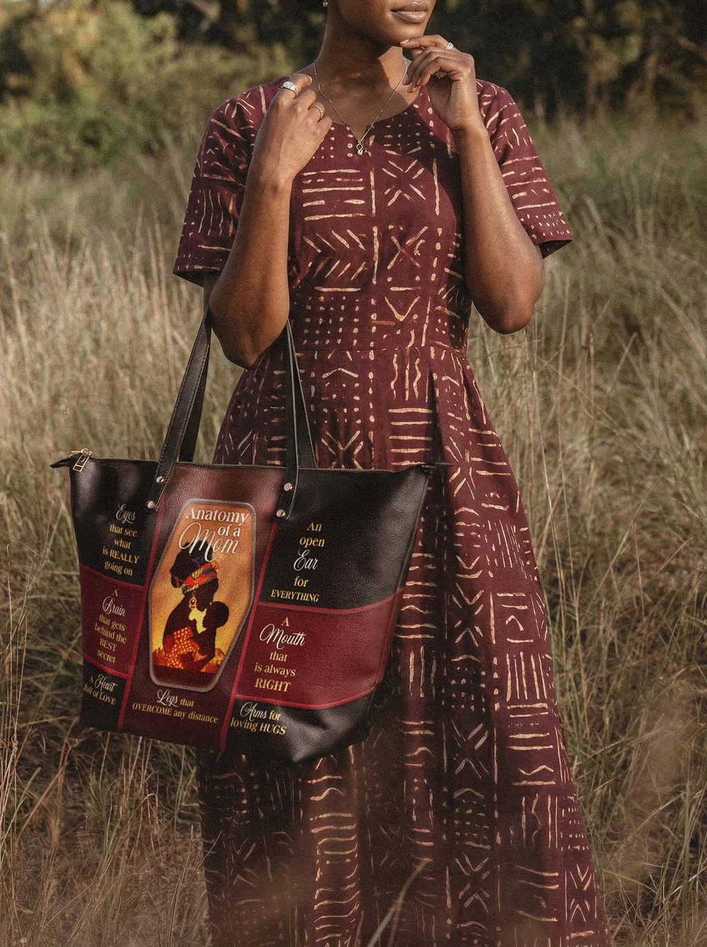 The Mamoya Tote, blending Mama (mother) and Joya (joy), is a heartfelt tribute to the love and strength of Black mothers. Featuring "Anatomy of a Mom," this design highlights the wisdom, resilience, and care that define motherhood.